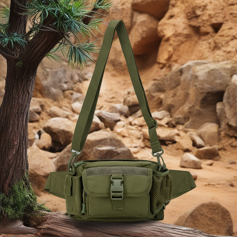 Explore with ease using the Aplon Adventure Tactical Waist Bag. Perfect for outdoor activities, this multifunctional bag features a water bottle cover and crossbody design for hands-free convenience.